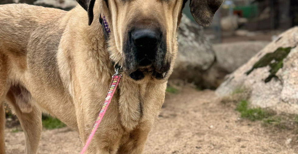 Maak kennis met Neron, een imposante mastin van buiten, maar een supergrote baby vanbinnen. Hij is gezond, vrolijk en vooral ongelooflijk aanhankelijk. Neron kwam onlangs bij ons in het asiel terecht en heeft hier meteen zijn hart verloren aan Sharon, zijn beste vriendin. Hij respecteert haar volledig, beschermt haar graag en kruipt gezellig tegen haar aan wanneer ze slaapt – een prachtig duo om te zien.