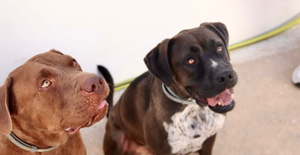 Hij is ontzettend aanhankelijk, houdt van menselijk gezelschap en speelt graag met andere honden. Brian loopt heel netjes aan de lijn. Zo hebben wij ze leren kennen. Ze leunen graag met heel hun lijf tegen je aan…een lebber hier , een lebber daar. Een pak liefde op 4 poten. In het asiel lopen ze zowel tussen reuen als teven rond.