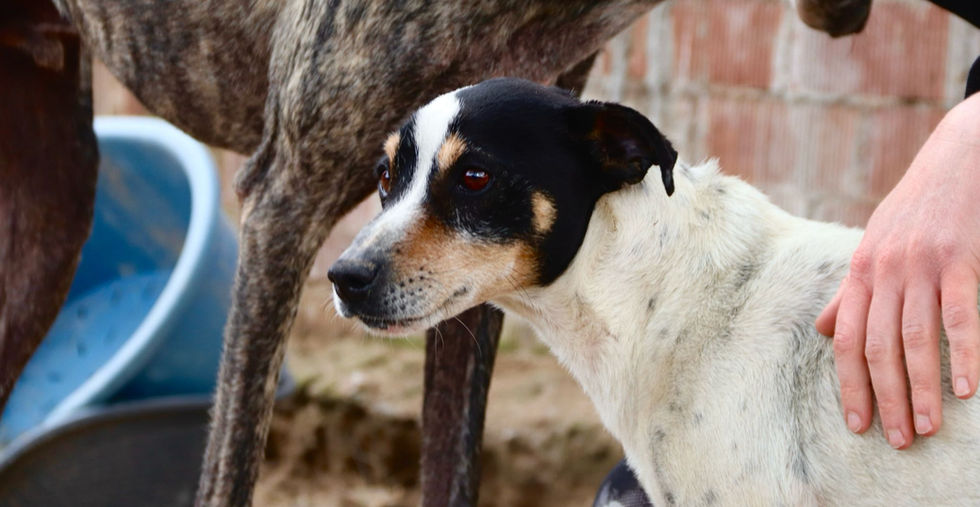 Toen we Wolf leerden kennen, waren we toch even onder de indruk. Niet omdat hij groots of luid aanwezig was – integendeel. En eerlijk? Die naam doet hem geen eer aan. Want Wolf is allesbehalve een wolf. Dit zachte, onderdanige ventje heeft een verleden dat vermoedelijk niet fraai was – men denkt dat hij ooit in een kleine ruimte werd opgesloten, iets wat vandaag nog stress bij hem oproept.